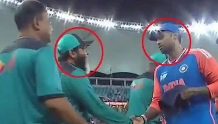 میچ کے اختتام پر دونوں ٹیموں کے کھلاڑیوں اور آفیشلز نے ایک دوسرے سے مصافحہ کیا، اس موقع پر بھارتی کپتان سوریا کمار یادیو اور ٹیم کو بنگلہ دش کے باؤلنگ کوچ مشتاق احمد سے بھی ہاتھ ملانا پڑا۔